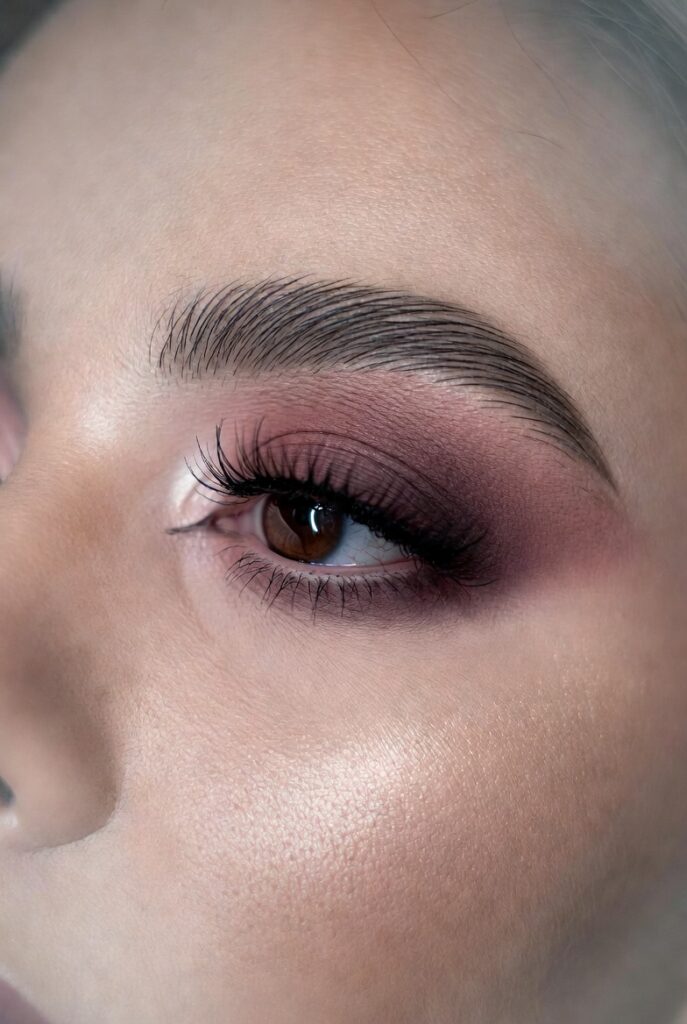 Create a sweet, romantic vibe with blush-toned eyeshadows. Blend shades of pink from light to medium across the lid, and add a bright highlight to the inner corner. This gradient effect adds dimension and openness, making it perfect for romantic dates or special occasions.