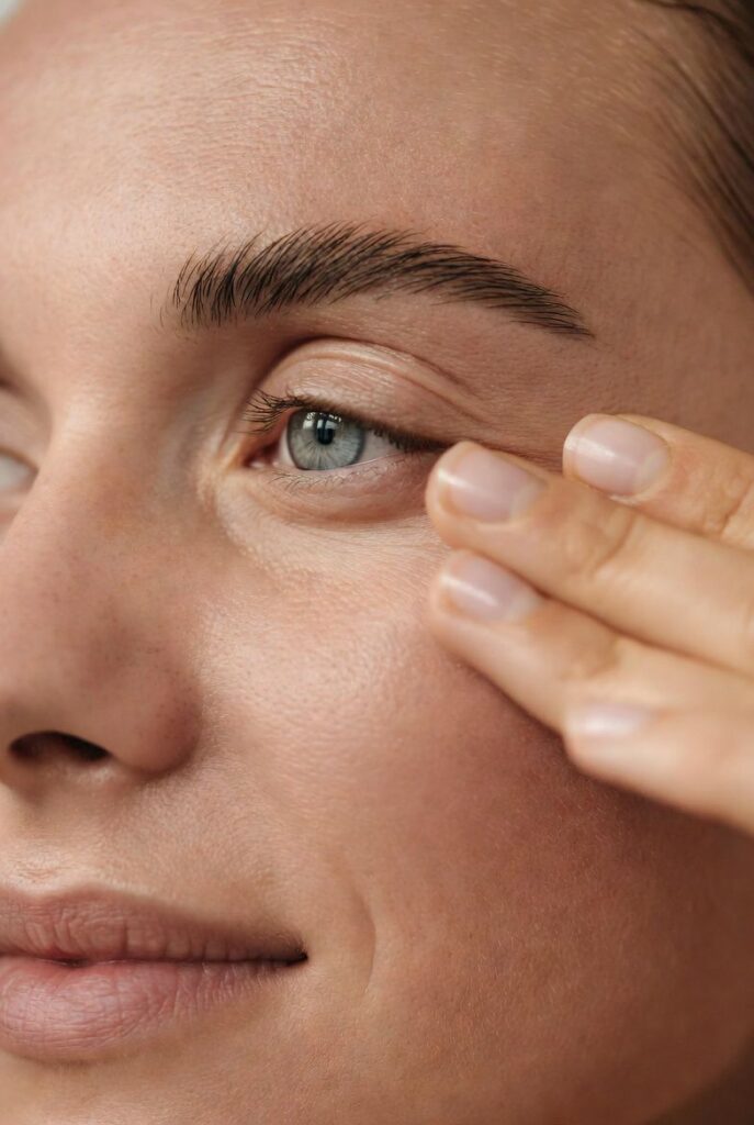 Start by gently cleansing your eyelids to remove natural oils and residue. Once your skin is clean, pat it dry. If you have dry skin around your eyes, apply a tiny amount of lightweight eye cream. Give it a minute or two to sink in completely—if it’s still wet, your eyeshadow might crease.