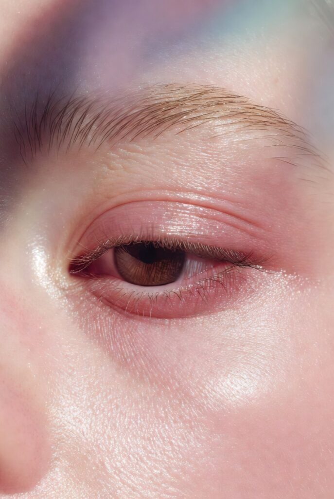 To achieve this, start with a light pink cream eyeshadow as a base. Then, gently tap a clear, non-sticky eye gloss or a tiny bit of lip balm over the center of your lids. The result is a fresh, dewy finish that catches the light and adds a unique texture to your makeup look.