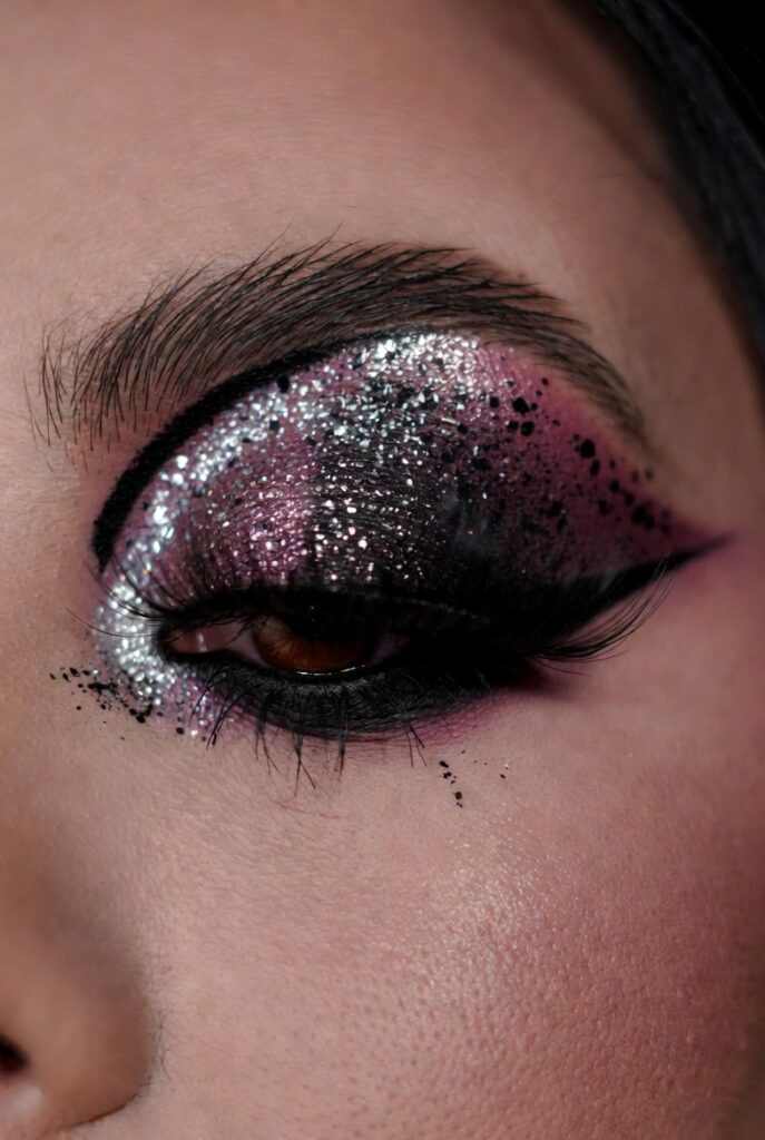Start with a dark base—deep charcoal, midnight blue, or black work best. Once you have your shadow laid down, apply a glitter glue or mixing medium to the center of the lid. Pat on a chunky glitter in a contrasting shade, such as silver, emerald green, or holographic purple. The contrast between the matte dark edges and the sparkling center creates a mesmerizing, dimensional look. Finish with a heavy coat of mascara to ensure your lashes don’t get lost against the dark background.