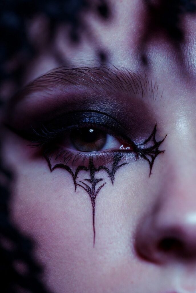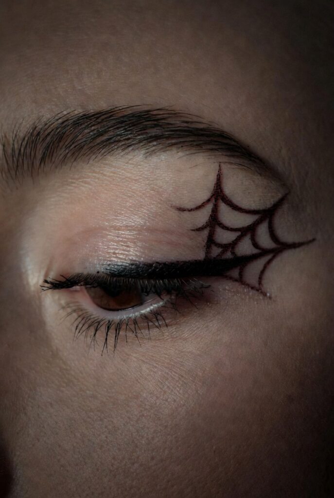 If you want a look that is detailed but achievable, spider web liner is a fantastic option. This design adds an intricate, spooky element to your makeup without requiring you to paint your entire face. It works best paired with a sharp winged liner.