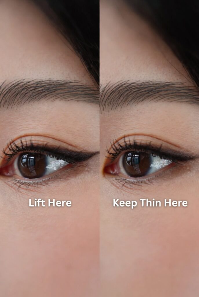 Eyeliner is often where people make the biggest mistakes with uneven eyes. The instinct is to match the liner thickness perfectly on both sides, but this actually highlights the asymmetry.