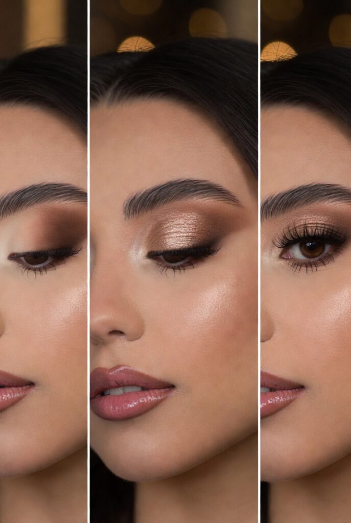 - Soft Glam: This romantic style uses soft champagne, rose gold, and taupe tones. It’s all about diffused, blended color with a touch of shimmer for a radiant finish.
